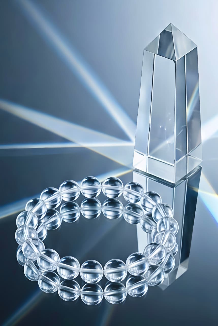स्फटिक (Clear Quartz) हे शुद्धता आणि सकारात्मक ऊर्जेचे प्रतीक मानले जाते. हे नैसर्गिक स्फटिक मण्यांपासून तयार केलेले ब्रेसलेट मनाला शांत ठेवते आणि नकारात्मक ऊर्जा दूर करण्यास मदत करते.